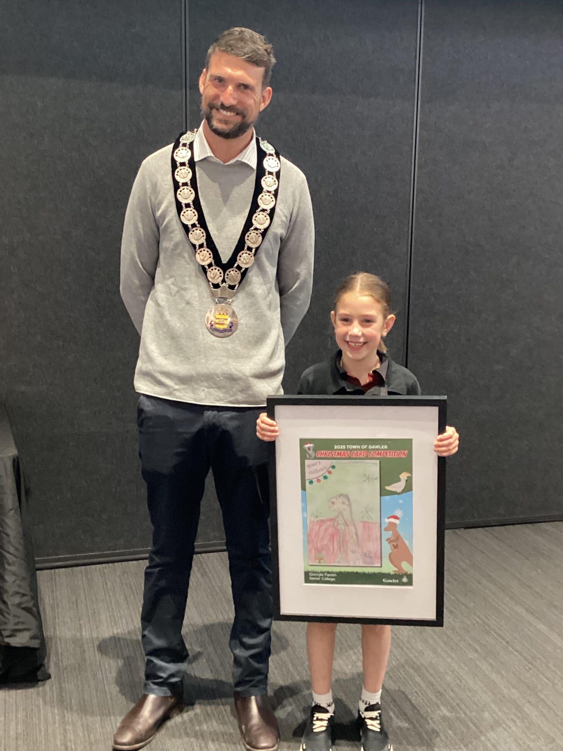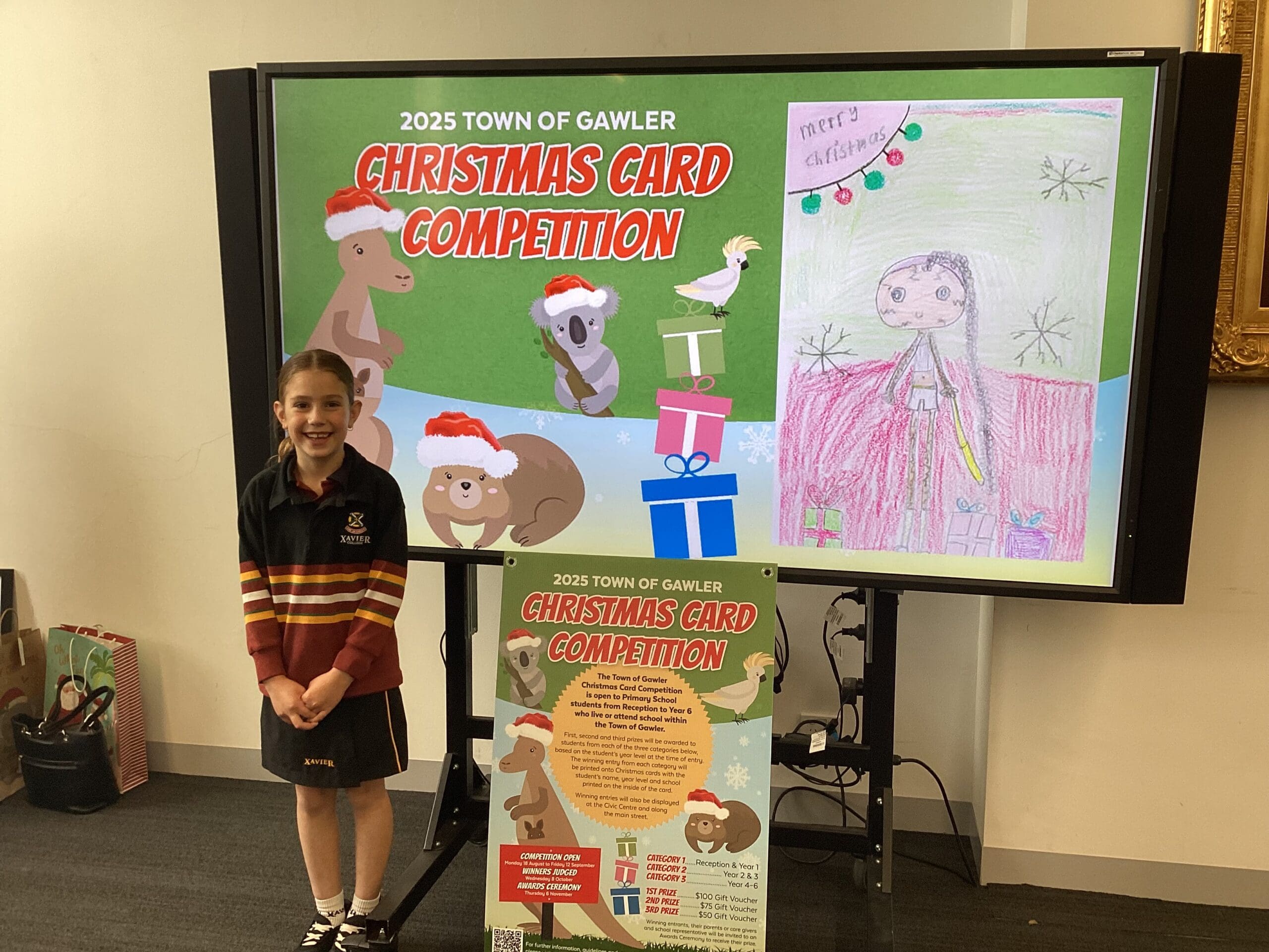 As part of her prize, Georgia received Christmas cards featuring her winning design, a Big W gift voucher, and a large framed print of her artwork. Her creative design will also be proudly displayed at the Gawler Civic Centre, spreading Christmas cheer throughout the festive season.